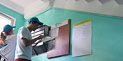 Мини-плакаты с правильными моральными установками для приезжих расклеивали по Фрунзенскому району по заданию администрации сотрудники молодежных организаций (фото: пресс-служба Фрунзенского района СПб)
