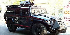 Автомобиль повышенной проходимости ГАЗ 233001 «Тигр» с муляжом гранатомета на крыше, в котором находились пьяные десантники, протаранил легковой автомобиль Chevrolet в центре Москвы и уехал с места происшествия. На борту машины написано «Юнкера МХПИ» – Московского художественно-промышленного института (фото: petrovka38.ru)