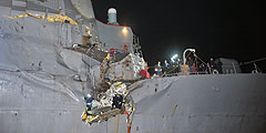 Супертанкер Otowasan протаранил эскадренный миноносец в правый борт в район носовой надстройки и мостика (фото: navy.mil)