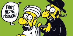 Вышедший в среду номер французского журнала «Шарли эбдо» с карикатурами на мусульман и пророка Мухаммеда побил рекорды продаж. Французский еженедельник опубликовал на обложке журнала имама на инвалидной коляске, которую везет ортодоксальный иудей. Имам при этом говорит: «Ничего смешного», а рядом расположена надпись «Неприкасаемые-2» - это пародия на французский фильм «Неприкасаемые» об инвалиде и его темнокожем помощнике. В самом журнале содержатся карикатуры с обнаженным пророком Мухаммедом. Власти Франции опасаются, что публикация подобных материалов изданием может спровоцировать новую волну беспорядков (фото: charliehebdo.fr)