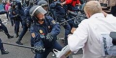 Демонстранты выражают свой протест против экономической политики консервативного правительства Мариано Рахоя Брея, которую поддерживают депутаты парламента от правящей Народной партии (фото: Reuters)