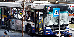 «Бомба взорвалась в автобусе в центре Тель-Авива. Это был теракт. Большинство людей получили легкие ранения», – сообщил представитель премьер-министра. По данным израильской полиции, ранения получили не менее 22 человек. Трое пострадавших находятся в тяжелом состоянии. Сотрудники полиции получили информацию от свидетелей о подозрительном человеке, который зашел в автобус, оставил какой-то предмет и убежал (фото: Reuters)