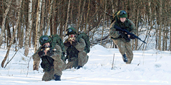 Концепция нового обмундирования включает в себя «многослойность», т.е. для сохранения тепла в условиях низких температур используются не традиционные в армии и тяжелые изделия из кожи и меха, а несколько надеваемых под верхний комбинезон элементов одежды из современных материалов (фото: Сергей Александров/ВЗГЛЯД)