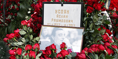 Похороны криминального авторитета Аслана Усояна, более известного как Дед Хасан, состоялись на Хованском кладбище под Москвой. У входа на кладбище были усилены меры охраны, сотрудники ЧОПа пресекали попытки журналистов проникнуть на территорию. Траурная церемония заняла три часа. Всего на кладбище побывали несколько сотен человек (фото: РИА "Новости")