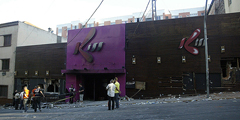 Чтобы спасти людей, пожарным пришлось топорами ломать стену клуба (фото: EPA/ИТАР-ТАСС)
