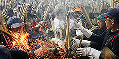 Храм Кван Им Тонга Худ Чо в Сингапуре, люди торопятся установить благовония одними из первых (фото: Reuters)