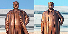 В Пхеньяне решили, что пуховик больше подходит бронзовой статуе северокорейского лидера Ким Чен Ира, отца нынешнего лидера, и заменили куртку, в которую он был одет первоначально, на «теплую» одежду, более подходящую суровым корейским зимам. Бронзовый постамент высотой около 25 метров установлен около статуи его отца, первого руководителя КНДР Ким Ир Сена. Вождь часто носил такой пуховик во время рабочих поездок по стране (фото: Reuters)