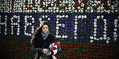 В центре Москвы арт-группа «Люди» выстроила стену из цветов «Россия навсегда». Смысл акции – призвать ухаживать за Россией, как за цветами. Организаторы акции не скрывают, что она приурочена к годовщине избрания Владимира Путина президентом России и к приходу весны (фото: РИА "Новости")