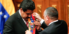 После принятия присяги Мадуро и Кабельо, не сдерживая слез, почтили память покойного президента Уго Чавеса (фото: Reuters)