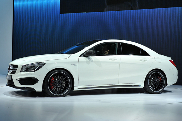 Mercedes-Benz CLA 45 AMG также демонстрировался в Женеве на закрытом показе. Автомобиль оснащен четырехцилиндровым турбодвигателем мощностью 360 л. с., что делает его самым мощным в А-классе (фото: EPA/ИТАР-ТАСС)