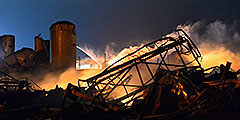 Пожарные опасаются подходить слишком близко к эпицентру пожара из-за угрозы повторных взрывов (фото: EPA/ИТАР-ТАСС)
