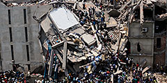 В городе Дакка обрушилось восьмиэтажное здание Rana Plaza, в котором размещались торговые лавки, банки, а также текстильная фабрика. В результате ЧП погибли около 82 человек, более 700 пострадали (фото: Reuters)