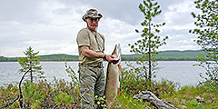 Стало известно о рыбалке, которую несколько дней назад совместно совершили Владимир Путин и Дмитрий Медведев. Президент добыл во время рыбалки знатный трофей – 21-килограммовую щуку (на фото) (фото: ИТАР-ТАСС)
