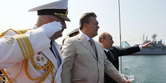 В Севастополе лидеры России и Украины Владимир Путин и Виктор Янукович в воскресенье приняли участие в торжествах по случаю Дня ВМФ России и Дня флота Украины. Совместные мероприятия по случаю военно-морского праздника проходят второй год и становятся хорошей традицией (фото: ИТАР-ТАСС)