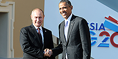 Лидеры России и США встретились впервые после ссоры двух стран, связанной с делом Сноудена и Сирией. Обама подъехал к Константиновскому дворцу на черном Cadillac с американским и российским флагами. Наблюдатели отметили, что рукопожатие было несколько более долгим, чем у Путина с другими участниками саммита (фото: ИТАР-ТАСС)