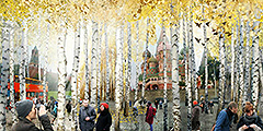 Консорциум во главе с американским архитектурным бюро Diller Scofidio + Renfro (DS+R) объявлен победителем конкурса на ландшафтно-архитектурную концепцию парка «Зарядье» в Москве, который появится на месте снесенной гостиницы «Россия». Непременные березки в проекте сочетаются со стеклом и бетоном (фото: facebook.com/mosdepkultura)