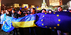 Немногочисленные акции против решения украинских властей о приостановке евроинтеграции прошли во Львове, Донецке, Ивано-Франковске, Луцке (фото: Reuters)