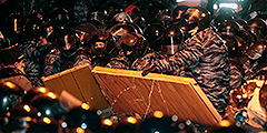 Правоохранители, встав в плотную шеренгу и выставив вперед защитные щиты, начали оттеснять людей к майдану Незалежности (фото: Reuters)