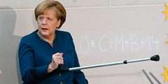 В начале своей приветственной речи Меркель призналась, что стоять ей пока достаточно тяжело (фото: Reuters)