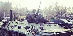 Бронетранспортер российского Черноморского флота выставлен у Дома Москвы в Севастополе. Это сделано, как заявляется, в рамках мероприятий по усилению защиты объектов ЧФ в связи с возможными террористическими угрозами (фото: twitter.com @InstaSevastopol)