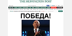 Крупнейший американский новостной сайт Huffingtonpost.com утром в понедельник, 17 марта, разместил на своей главной странице фотографию президента России Владимира Путина и заголовок «ПОБЕДА!». Так популярное онлайн-СМИ отреагировало на прошедший накануне референдум по самоопределению Крыма. Отметим, что для The Huffington Post пишут более 9000 блогеров, политиков и знаменитостей, ученых и экспертов. В заметке Википедии говорится, что представители Республиканской партии США считают The Huffington Post враждебным к их партии ресурсом (фото: huffingtonpost.com)