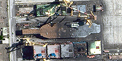 Американский разведывательный спутник сделал снимок авианосца, строящегося в Иране. Правда, это не настоящий корабль, а всего лишь макет американского атомного авианосца класса «Нимиц». Его размеры составляют две трети от прототипа (фото: digitalglobe.com)