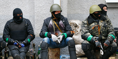 Бойцы народного ополчения на Юго-Востоке Украины захватывают административные здания