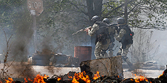 В свою очередь, МВД Украины утверждает, что взяло под контроль три блокпоста самообороны в Славянске. Ведомство также утверждает, что при этом сотрудники МВД и служащие минобороны Украины убили пятерых ополченцев. По данным Киева, один участник «активной фазы» «спецоперации» ранен (фото: Reuters)