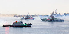 Генеральная репетиция морского парада в честь Дня ВМФ прошла в Севастополе. Это будет первый после распада СССР парад в Севастополе, не ограничиваемый в проведении независимой Украиной. На фото – ракетные катера Черноморского флота (фото: Максим Брянский)