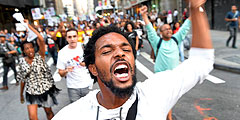 Почти в 90 городах Соединённых Штатов этой ночью прошли траурные шествия в память о погибшем Майкле Брауне, тысячи людей почтили его память минутой молчания (фото: Reuters)