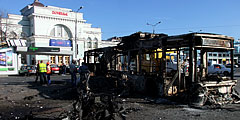 Один из снарядов попал прямо в троллейбус (фото: ИТАР-ТАСС)