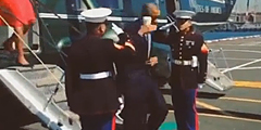 Президент США Барак Обама отдал честь морским пехотинцам, встречающим его в Нью-Йорке, держа в правой руке стакан с напитком. Это вызвало волну возмущения и критики в американских СМИ и социальных сетях. Пользователи Twitter придумали хештег #LatteSalute – воинское приветствие латте (фото: кадр из выложенного в Сети видео )