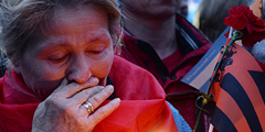 На Поклонной горе началась акция памяти «Донецк: невинно убиенные». Напомним, во вторник стало известно, что ополченцы обнаружили захоронение тел на территории лесного склада шахты номер 22 «Коммунар» (Нижняя Крынка, 60 км от Донецка), которая до последнего времени находилась под контролем силовиков (фото: РИА «Новости»/Михаил Воскресенский)