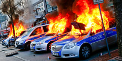 Акция протеста против политики Европейского Центробанка в немецком Франкфурте-на Майне обернулась массовыми беспорядками. В центре города горят автомобили, полиция применяет гранаты со слезоточивым газом и водометы. В ходе столкновений есть десятки пострадавших с обеих сторон (фото: Reuters)