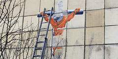 Сотрудники коммунальных служб Перми очистили стену жилого дома, на котором художник Александр Жунев нарисовал граффити, изображающее распятого на кресте космонавта Юрия Гагарина. В связи с появлением рисунка ведется полицейская проверка (фото: krymedia.ru)