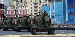 После исторических боевых машин на главной площади страны появились современные бронеавтомобили, в том числе бронетранспортеры БТР-82А (фото: Владимир Петров/РИА «Новости»)