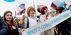 Украинских флагов во время шествия замечено не было (фото: Игорь Маслов/РИА "Новости")
