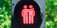 Власти австрийской столицы на время проведения «Евровидения-2015» в знак поддержки прав секс-меньшинств установили в Вене специальные светофоры, на которых вместо гендерно нейтрального знака высвечиваются однополые пары зеленых и красных человечков (фото: Heinz-Peter Bader/Reuters)