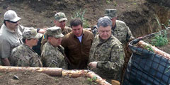 Президент Украины сделал очередной демонстративный жест в поддержку вооруженных сил страны: он приехал осмотреть фортификационные сооружения под Мариуполем. Фото Петра Порошенко в окопах распространила его пресс-служба (фото: twitter.com/STsegolko)