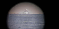 Тот самый российский корабль, которого так испугался премьер Канады. Стивен Харпер опубликовал это фото, сделанное через смотровые приборы фрегата, на котором он прибыл для проведения учений в Балтийском море (фото: twitter.com/pmharper)