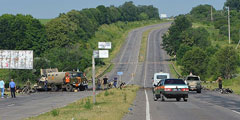 На трассе Киев – Харьков возле Полтавы в ночь на среду загорелся грузовик нацгвардии, перевозивший боеприпасы. В результате снаряды и мины начали взрываться. Грохот был слышен в нескольких районах Полтавы (фото: kolo.poltava.ua)