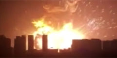 На складе легковоспламеняющихся веществ в портовом городе Тяньцзинь на севере Китая произошел взрыв мощностью более 3 тонн в тротилловом экиваленте. Погибли более 40 человек, около 400 получили ранения (фото: Кадр из видео)