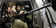Екатеринбург. Военнослужащие с комплексом разведки управления и связи «Стрелец» на выставке снаряжения и военной техники у здания Дома офицеров (фото: Донат Сорокин/ТАСС)