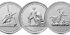 Подвиг советских воинов, сражавшихся на Крымском полуострове в годы Великой Отечественной войны, отмечен выпуском пятирублевых монет из недрагоценных металлов. В списке – «Оборона Севастополя», «Оборона Аджимушкайских каменоломен», «Керченско-Эльтигенская десантная операция», «Крымская стратегическая наступательная операция», «Партизаны и подпольщики Крыма» (фото: cbr.ru)
