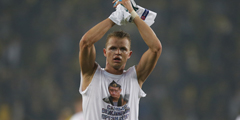 Футболист московского «Локомотива» Дмитрий Тарасов оказался в центре внимания после того, как во вторник на матче в Турции с местным «Фенербахче» показал болельщикам майку с изображением Владимира Путина. УЕФА может сурово наказать игрока за этот поступок (фото: Emrah Gurel/AP/ТАСС)