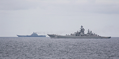 Западная пресса, особенно британская и норвежская, заполнена фотографиями российских кораблей, идущих на выполнение задания к берегам Сирии. Возглавляют группировку авианосец «Адмирал Кузнецов» и ракетный крейсер «Петр Великий» (фото: Norwegian Armed Forces)