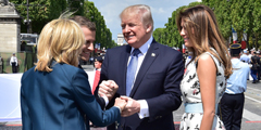 Теперь Макрон явно не намерен уступать Трампу в жесткости рукопожатия, и в схватке 14 июля наблюдатели именно его признали победителем (фото: Yves Herman/Reuters)