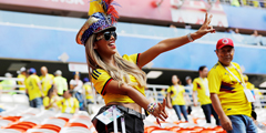 Колумбийская болельщица во время матча Колумбия – Япония, на котором была показана первая красная карточка чемпионата (фото: Yohei Osada/AFLO/Global Look Press)