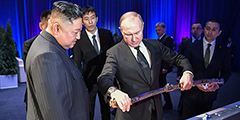Лидер Северной Кореи подарил Путину корейский меч. Ким пояснил, что этот меч «олицетворяет силу, олицетворяет душу – мою и нашего народа, который поддерживает вас» (фото: Алексей Никольский/пресс-служба президента РФ/ТАСС)