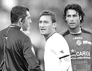 Свою огромную по размеру «Илиаду» Гомер посвятил всего лишь одному событию – гневу Ахиллеса. Про гнев Тотти написать можно было бы не меньше. Капитан «Ромы» просто рассвирепел в компенсированное время к матчу «Ливорно» – «Рома» (1:1), в котором он четвертью часа ранее забил гол. После единоборства с защитником «Ливорно» Галанте Тотти принялся выяснять отношения с оппонентом на повышенных тонах. Беседа продолжилась обоюдными толчками и даже ударами. Судья намеревался остудить пыл футболистов желтыми карточками, однако Тотти отказался подходить к судье для демонстрации ему желтой карточки. В результате желтая карточка покраснела – арбитр попросил римского идола покинуть поле.